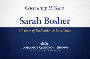 FloranceGordonBrown is proud to celebrate Sarah Bosher’s 15th anniversary with the firm.
