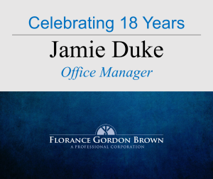 FloranceGordonBrown is proud to recognize Jamie Duke on her 18th work anniversary with the firm.