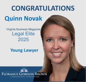 FloranceGordonBrown, PC, is proud to announce that partner Quinn Novak has been selected as a 2025 Legal Elite honoree by Virginia Business Magazine in the Young Lawyer category.