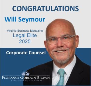 Will Seymour, a partner with FGB, has been recognized by Virginia Business Magazine as a 2025 Legal Elite in the Corporate Counsel category. Well-deserved recognition for outstanding work and leadership.